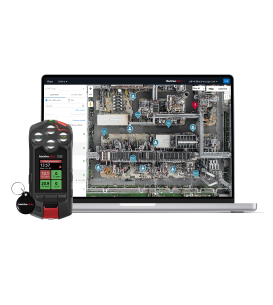 Durante un incidente, los dispositivos portables de Blackline Safety y los monitores de gas de área G7 EXO le dan visibilidad instantánea de la localización de los trabajadores y las lecturas de gas a su alrededor, incluso en ubicaciones remotas.